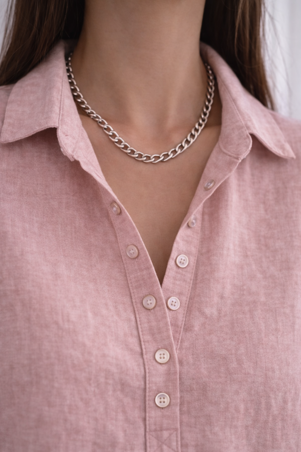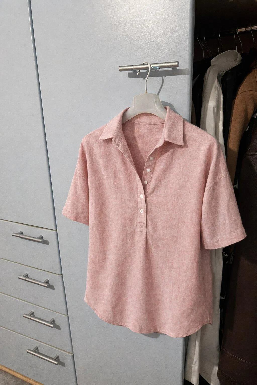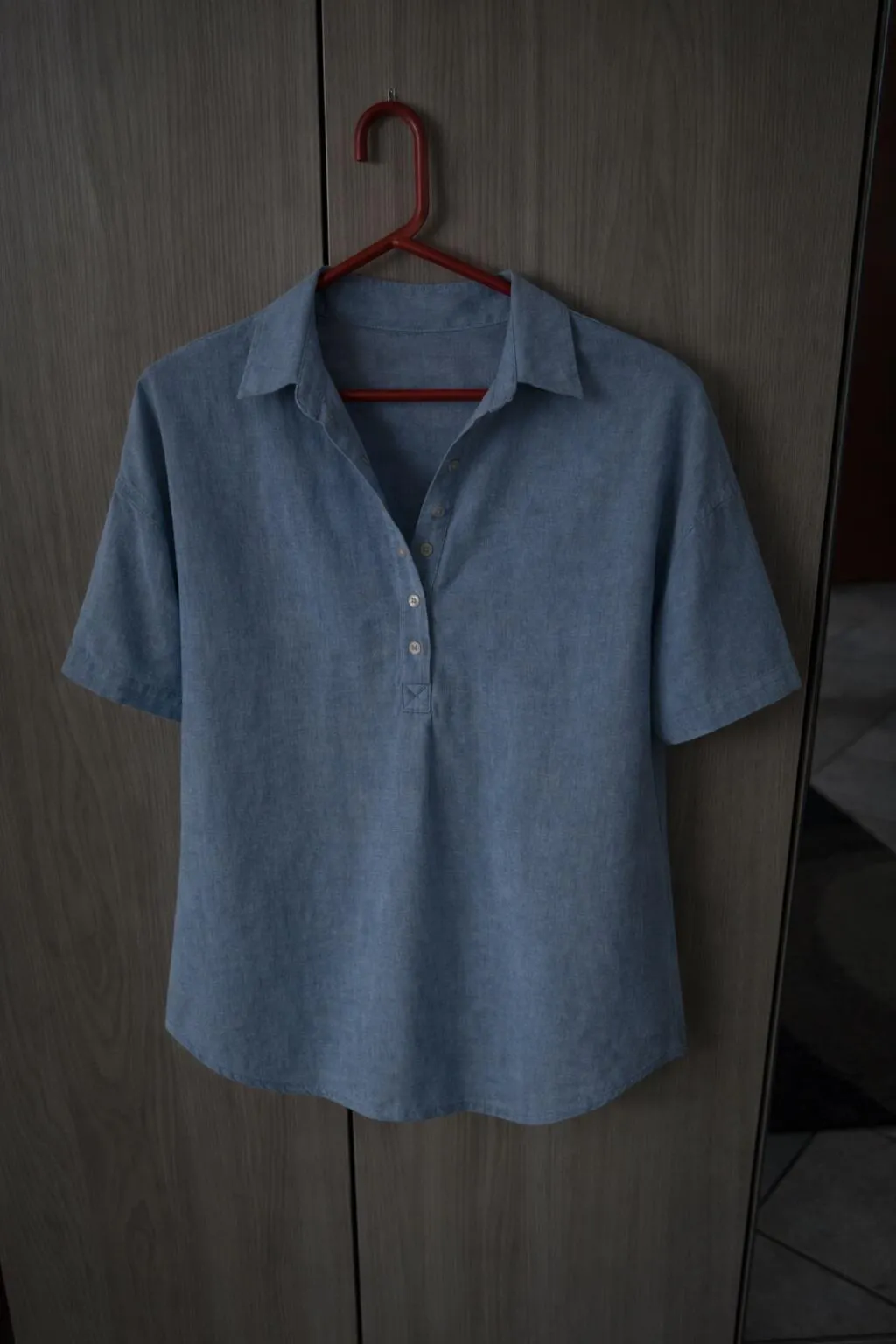 Scopri la blusa perfetta per uno stile semplice ma sempre curato. Il suo design essenziale con colletto morbido e scollo a V con bottoni frontali dona un tocco elegante e naturale, facile da abbinare in ogni occasione.