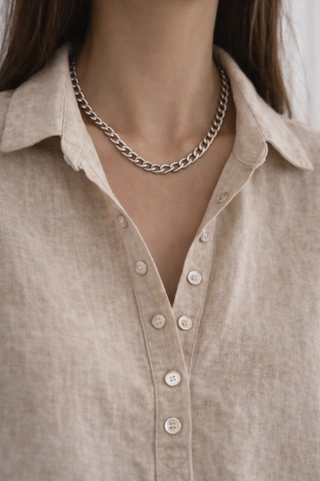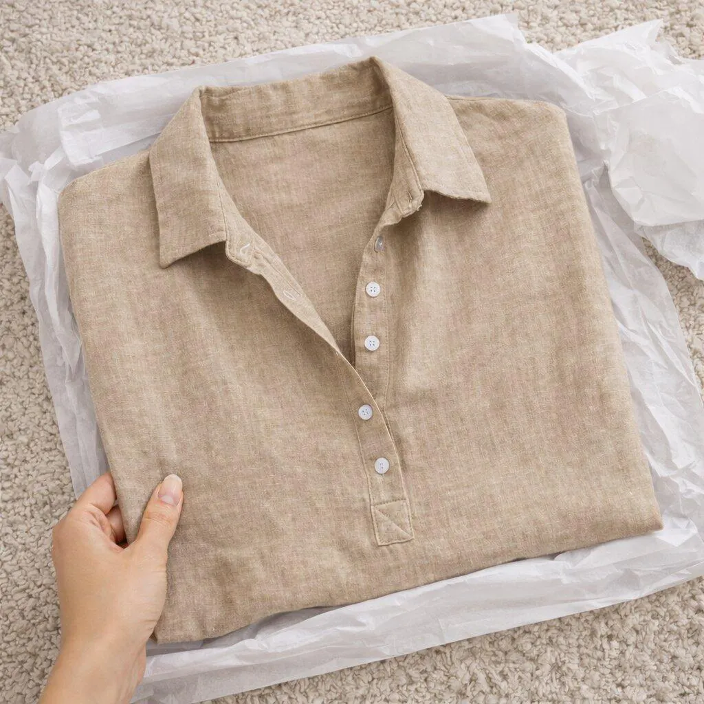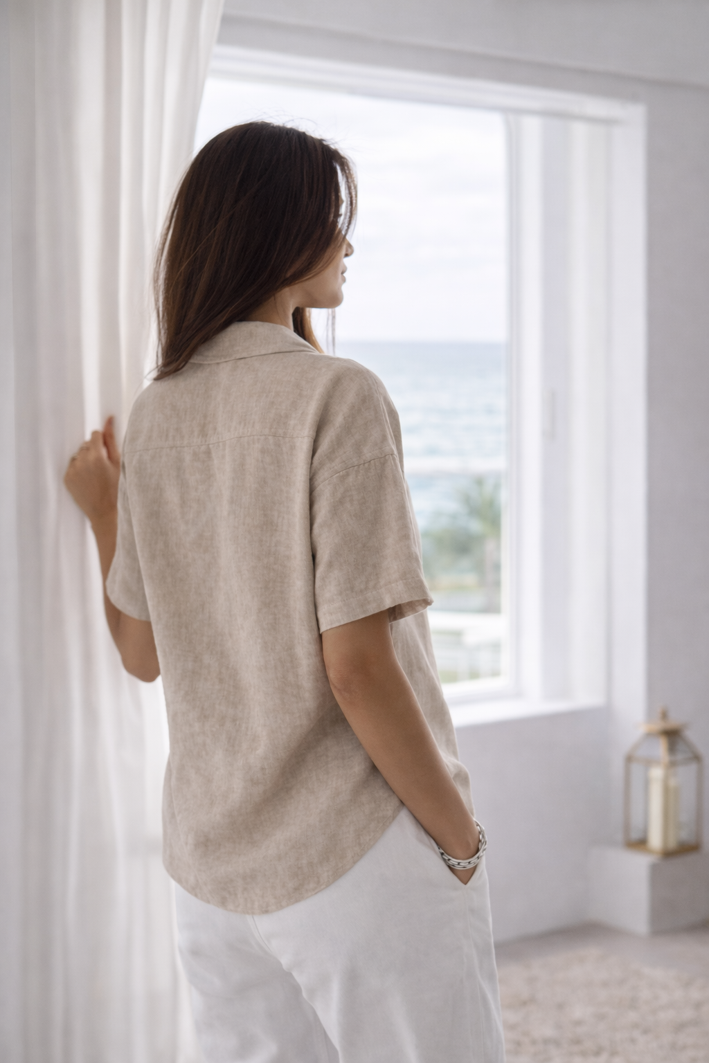 Scopri la blusa perfetta per uno stile semplice ma sempre curato. Il suo design essenziale con colletto morbido e scollo a V con bottoni frontali dona un tocco elegante e naturale, facile da abbinare in ogni occasione.